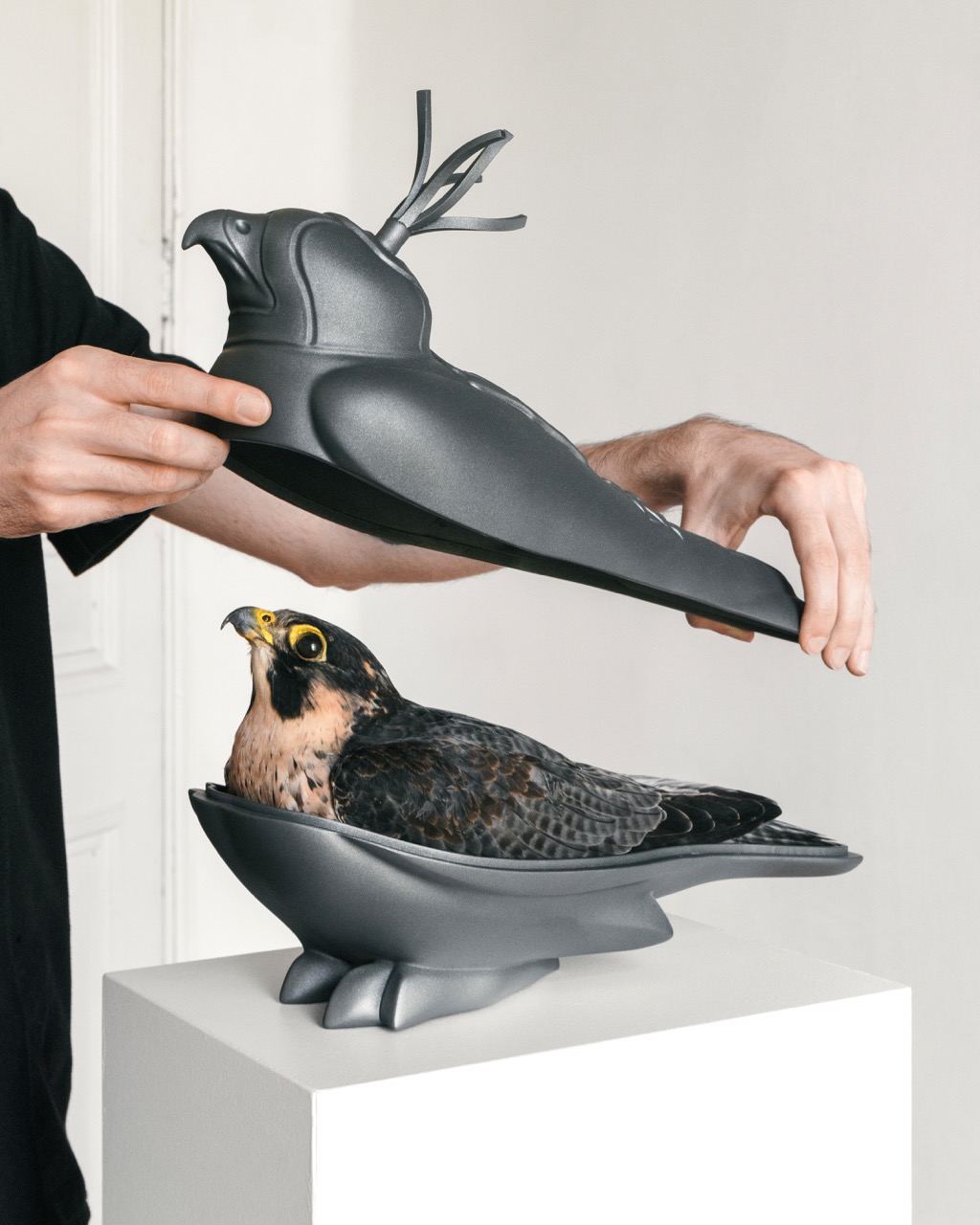 Shevardena, 2024, Falco Peregrinus, resin print and acrylic, 26 x 35 x 15 cm (closed sarcophagus)