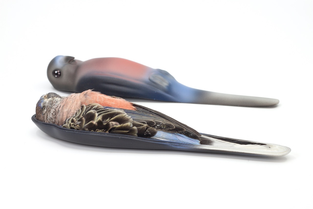 Rosa, 2022, Neopsephotus bourkii, PLA print and airbrushed acrylics, 21 cm (length sarcophagus), Unique